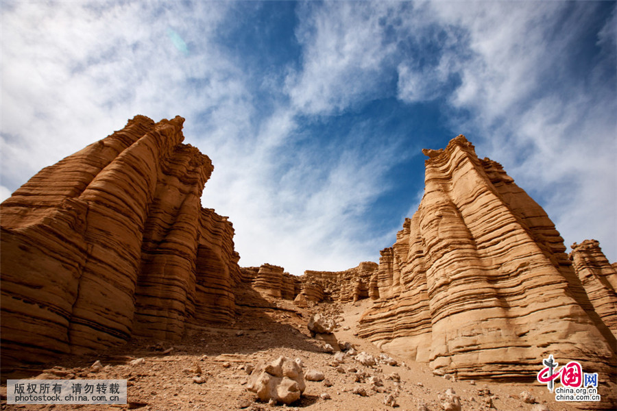 这是4月2日拍摄的新疆哈密西南约200公里处的雅丹景观。中国网图片库 普拉提.尼亚孜/摄