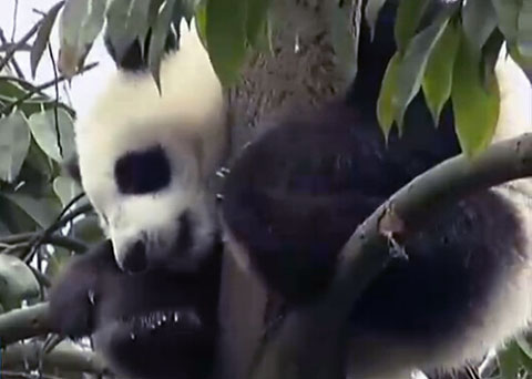 探访四川熊猫幼儿园 呆萌国宝上树悠然自得