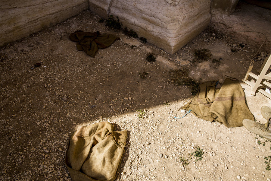 布满灰尘的粗麻布头罩,遗留在了IS执行死刑的地方。(网页截图)
