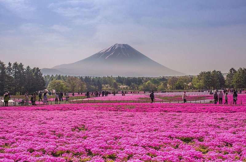 在日本,不仅日立滨海公园有花开盛景,一年一度的富士芝樱祭同样美不胜收。每年的4月至6月,朵朵樱花盛开,汇成粉色海洋,让人流连忘返。