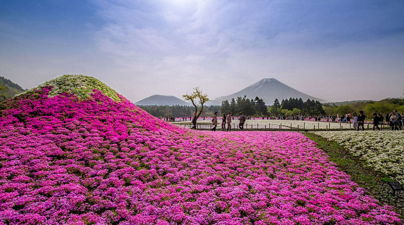 在日本,不仅日立滨海公园有花开盛景,一年一度的富士芝樱祭同样美不胜收。每年的4月至6月,朵朵樱花盛开,汇成粉色海洋,让人流连忘返。