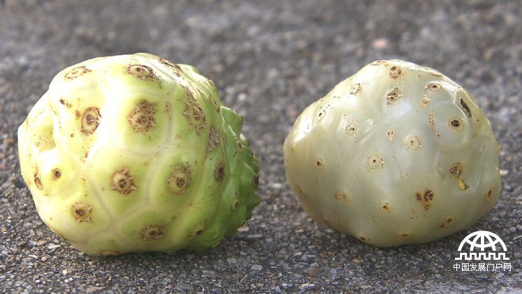 诺丽果里含有抑菌成分,果实成熟后不会腐烂,只会慢慢发酵。最后发酵后的果子水分蒸发,变成像石头一样硬的果干。