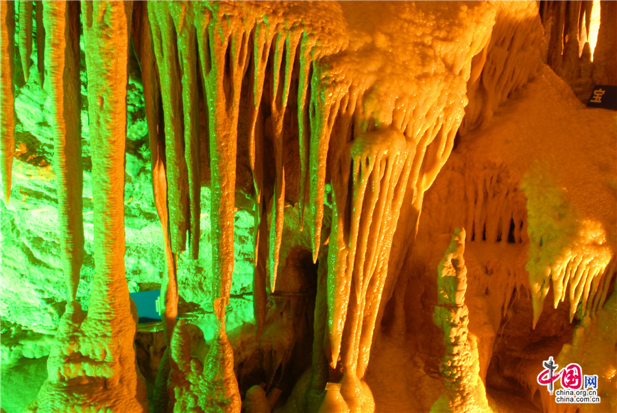 万象洞又名仙人洞,五仙洞,相传五位仙人曾在此修炼而得名。洞内深不可测,地形复杂,曲折迂回。小处高阔不足1米,仅容一人爬行;大处高轩宏敞,纵横百米之外。现已开发深度为3.5公里,分为三大景区,分别为:月宫、龙宫和天宫。(图片来源:陇南武都宣传部)