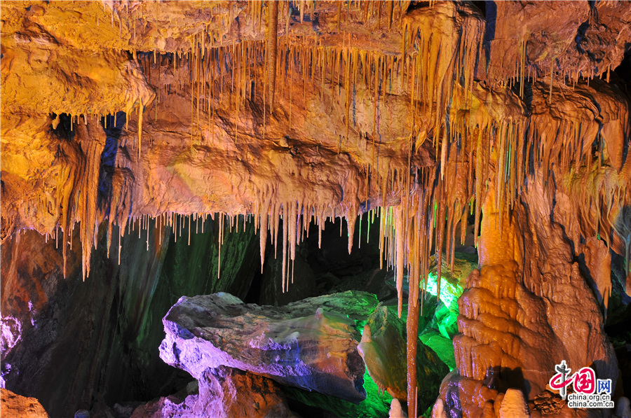 万象洞又名仙人洞,五仙洞,相传五位仙人曾在此修炼而得名。洞内深不可测,地形复杂,曲折迂回。小处高阔不足1米,仅容一人爬行;大处高轩宏敞,纵横百米之外。现已开发深度为3.5公里,分为三大景区,分别为:月宫、龙宫和天宫。(图片来源:陇南武都宣传部)