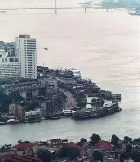 1998年,汉口龙王庙沿江大道转弯处,江水水面高度明显高出路面高度