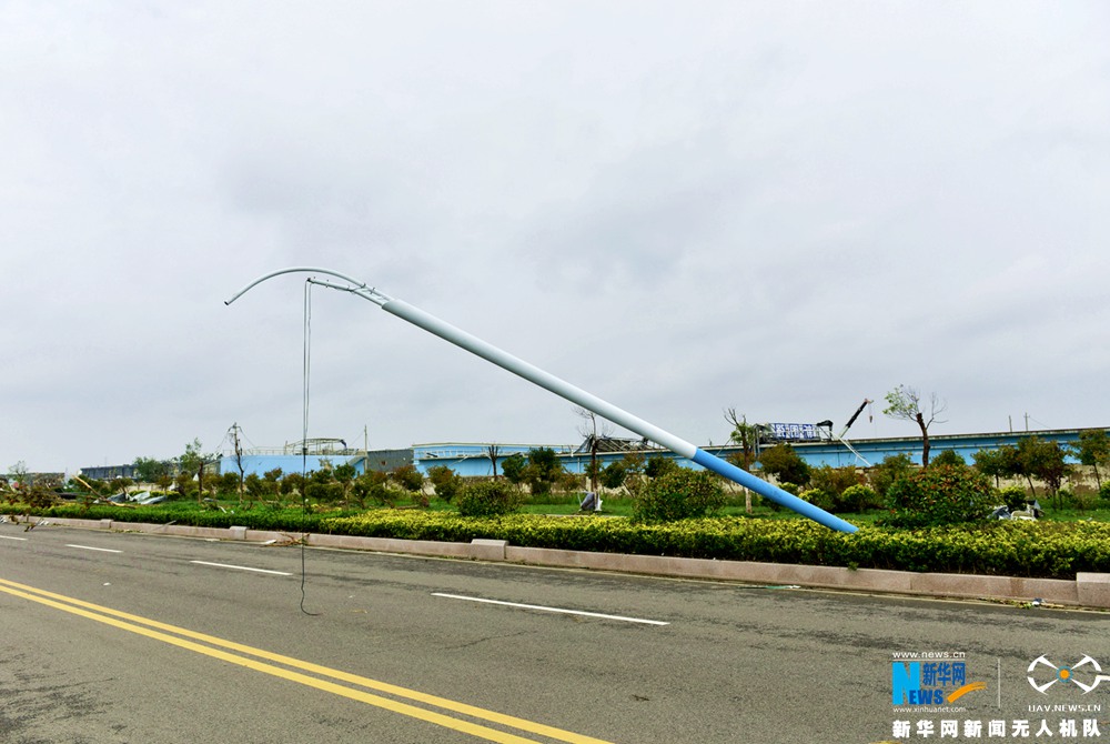 6月23日14时许,江苏盐城市阜宁县、射阳县部分地区突发龙卷风冰雹严重灾害,图为航拍被龙卷风破坏的电力设施。