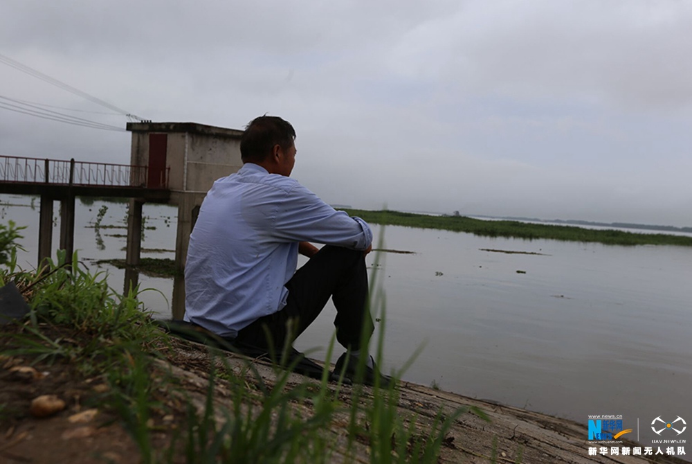 长江干堤荆江门电排堤段防汛安全巡逻员全神贯注观察江面水纹变化,这一坐就是6个小时。