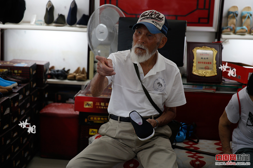 老人去胡同旁边的一家老北京布鞋店买鞋。