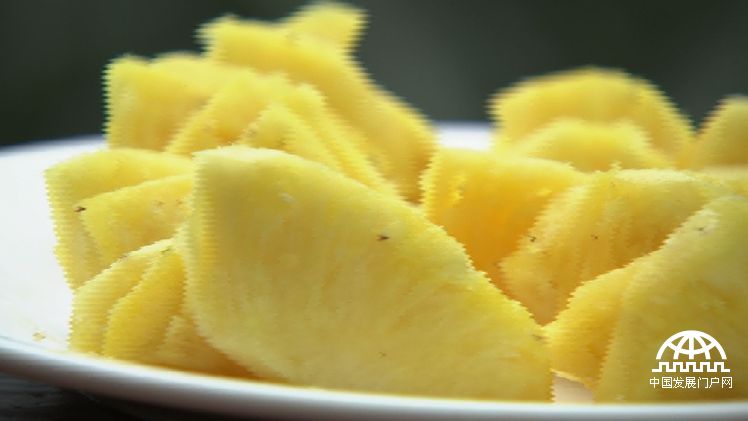 吴建连:嗯,太甜了。又香又甜。四五月份的菠萝,口感好,糖度高。做出来的罐头味道比较好。