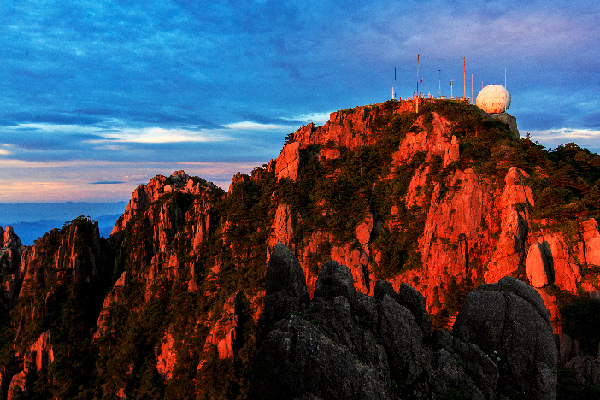 清人余鸿是这样描绘黄山日出的:“彩云绚烂涌朝暾,捧出红轮到海门。乍起乍沉光煜烁,九龙误作火珠吞。”黄山适宜看日出的景点很多,如狮子峰、丹霞峰、始信峰、光明顶、玉屏峰、莲花峰、天都峰等处。(方立华)