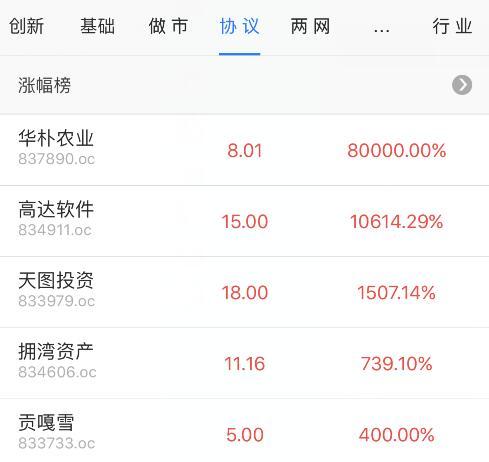 协议转让方面,229家公司发生交易,成交额2.99亿元。其中,华朴农业收涨80000%,领涨协议转让股,成交额为8.01万元。成交额方面,凯诘电商位居交易活度榜首,成交995.34万元。