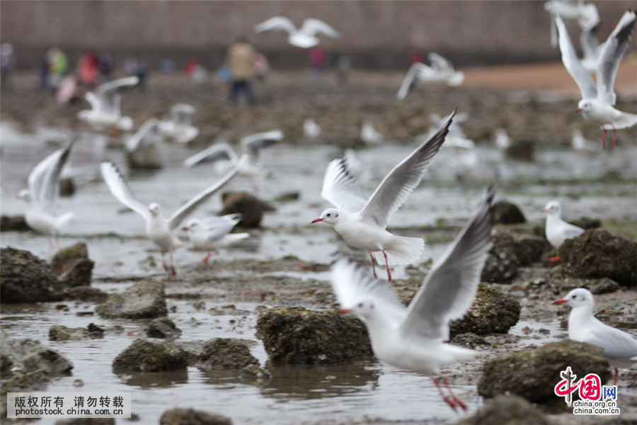 2016年10月23日,海鸥在青岛栈桥海域休栖觅食。中国网图片库 黄杰显/摄 2016年10月23日,海鸥在青岛栈桥海域休栖觅食。当日,上百只红嘴鸥飞临栈桥海域“卖萌”,吸引许多人前来喂食赏鸥,其乐融融,构成一幅人与自然和谐相处的优美画卷。据了解,海鸥是青岛的老朋友,这批红嘴鸥是海鸥大军的先头部队,每年秋冬,数十万只海鸥从西伯利亚寒冷地带飞临青岛觅食越冬,已持续20余年,为青岛增添了亮丽的风景。自1994年冬天青岛发起挽留海鸥行动,前后有上百万市民和游客热情参与。