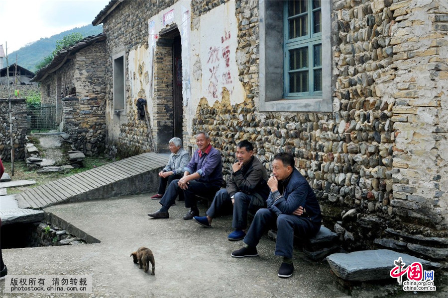 10月30日,江西省德兴市龙头山乡石头村几名留守村里的老人在房前守护着自己石头家园。中国网图片库 卓忠伟/摄2016年10月30日,江西省德兴市龙头山乡陈坊上源头村。一个家家户户都用鹅卵石构建房屋的石头村,村里现存石头屋18栋,是村民于上世纪六七十年代就地取材,用河滩、荒地的鹅卵石,由技艺精湛的泥瓦匠拌上加有糯米的黄泥石灰建成,冬暖夏凉,适宜居住。被人们誉为隐藏在深山的石头部落。