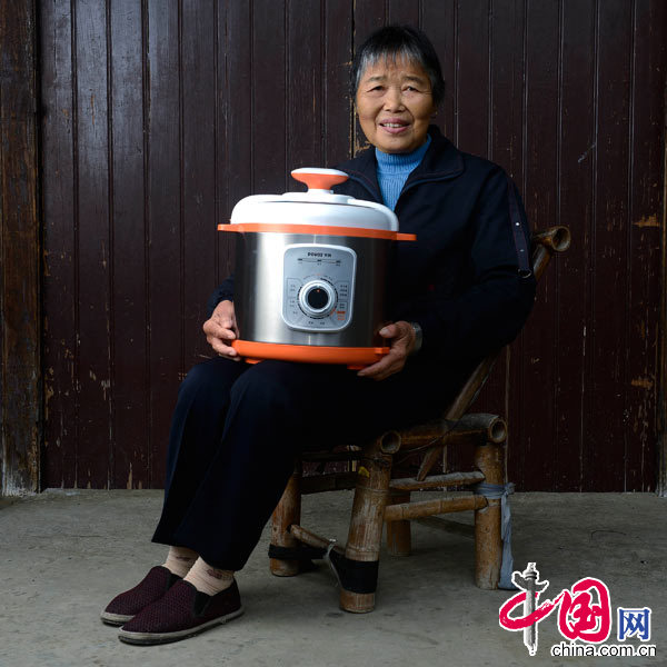村民张月仙,72岁,花了169元买了电饭煲。电饭煲到手后,村淘合伙人金芬南特意上门告诉老人每个功能如何操作。张约仙说:“这几个孩子我都熟悉,信得过他们。”