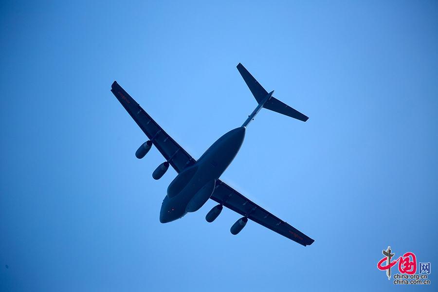 运20飞机在第十一届中国国际航空航天博览会上进行飞行展示。中国网 杨佳摄影