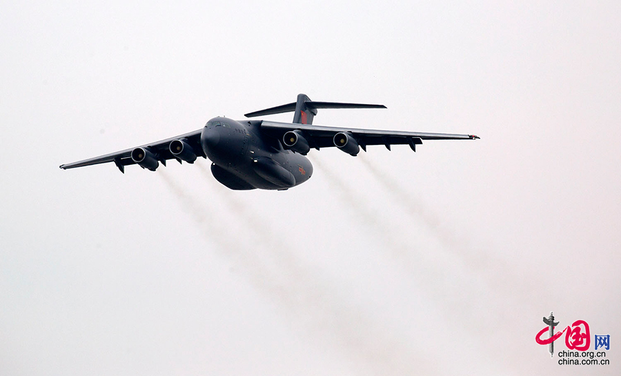 运20飞机在第十一届中国国际航空航天博览会上进行飞行展示。中国网 杨佳摄影