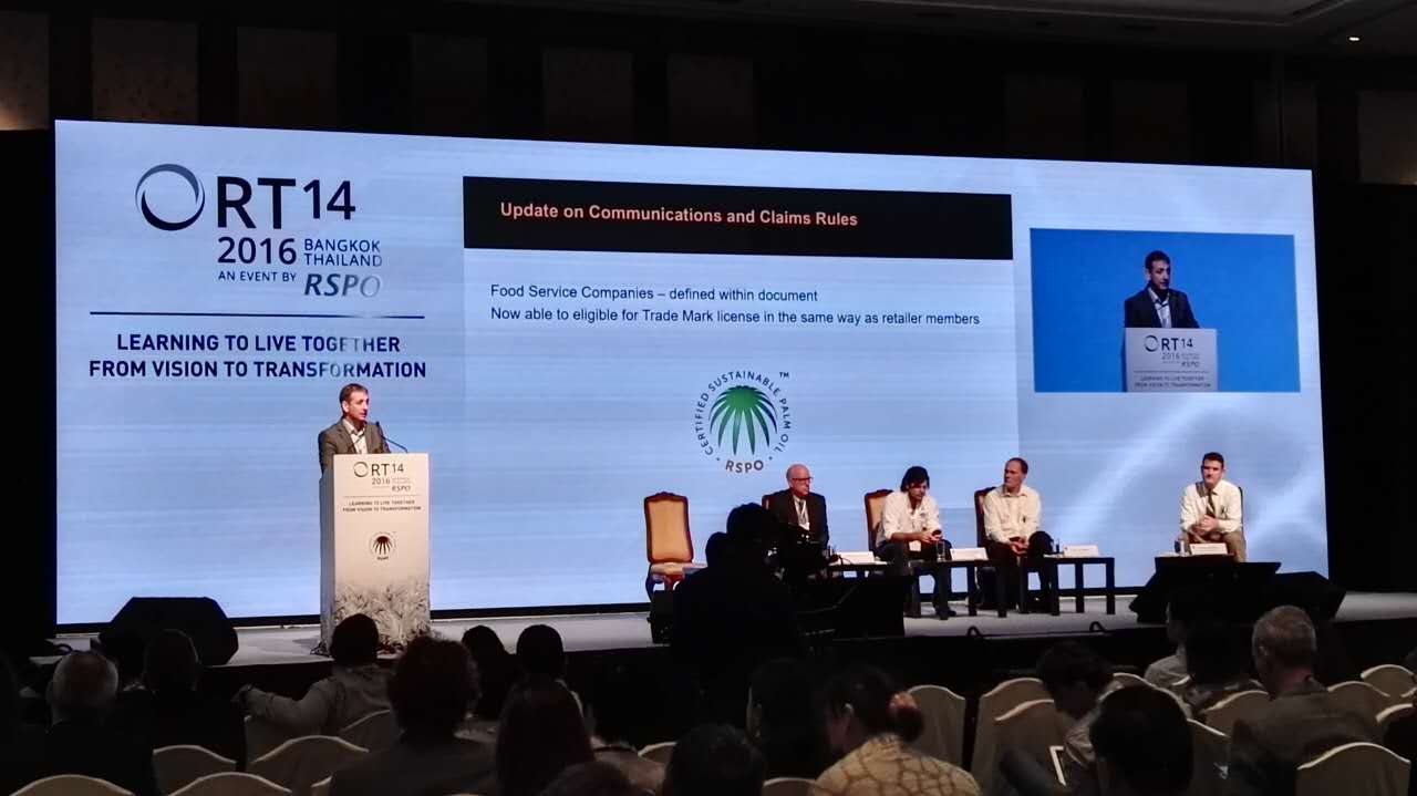 RT14于2016年11月9日和10日在泰国曼谷香格里拉酒店召开,列席会议的还有泰国副总理维萨努(H.E. General Prawit Wongsuwan)以及包括棕榈油行业重要人物、可持续发展企业家、财经组织、政策领袖、学者以及来自46个国家的社会与环境非政府组织在内的超过800位代表。