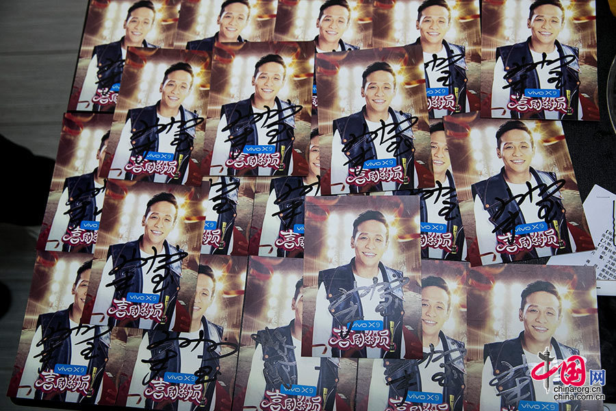 等墨迹风干,节目组就会把这些签名照以抽奖的形式送到各位幸运的粉丝手中。中国网记者 董宁摄影