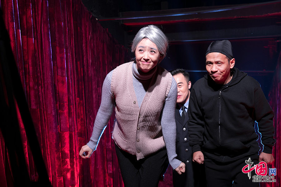 半小时后,演员换装化妆完毕,宋小宝、蒋欣和程红三人登上入场通道,正式开始决赛录制。中国网记者 董宁摄影