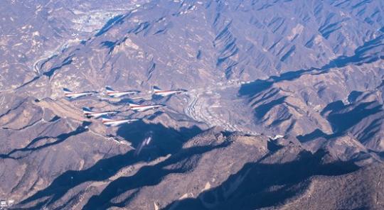 12月6日,被誉为“中国蓝天仪仗队”的空军八一飞行表演队开展任务拓展飞行训练,6架歼-10表演机编队飞越燕山深处的黄崖关长城,通过山谷飞行提升复杂环境特技表演能力。