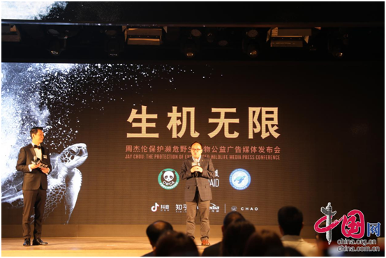 中国网/中国发展门户网讯(实习记者张允奕)2019年5月27日,保护濒危物种海龟和穿山甲的公益广告《无限生机》在京发布。发布会由中国野生动物保护协会、中国海龟保护联盟和国际环保组织野生救援共同召开,中国野生动物保护协会总工程师尹峰,野生救援全球项目主任约翰•贝可,野生救援公益大使周杰伦等出席并发言。