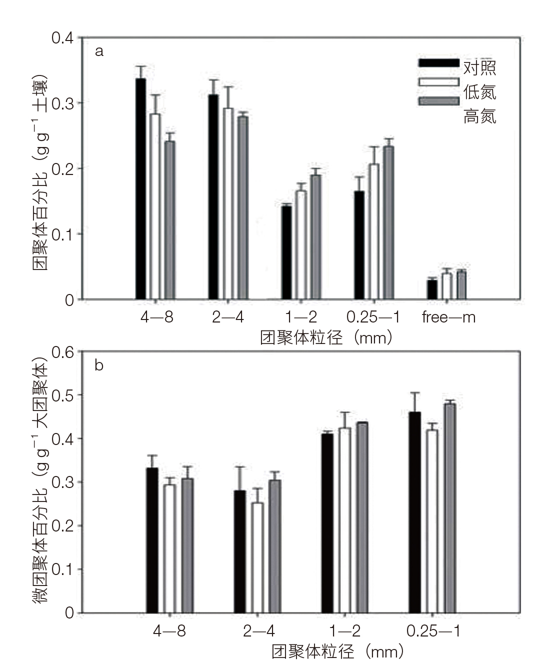 图9土壤团聚体的分布规律(a)及大团聚体包裹的微团聚体含量变化(b)