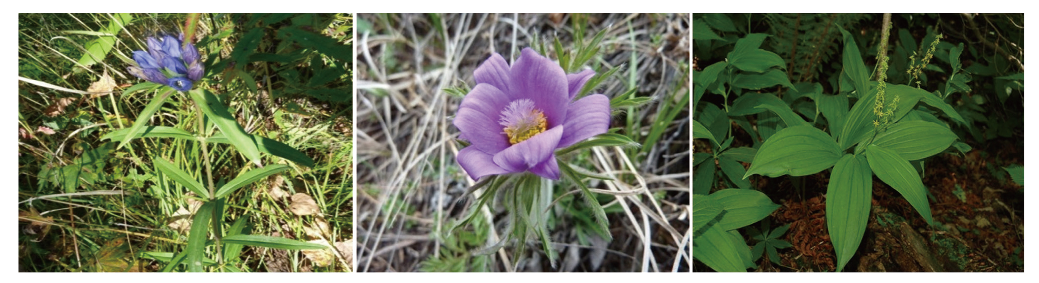 图16兴安龙胆、裂萼细叶白头翁、双色鹿药