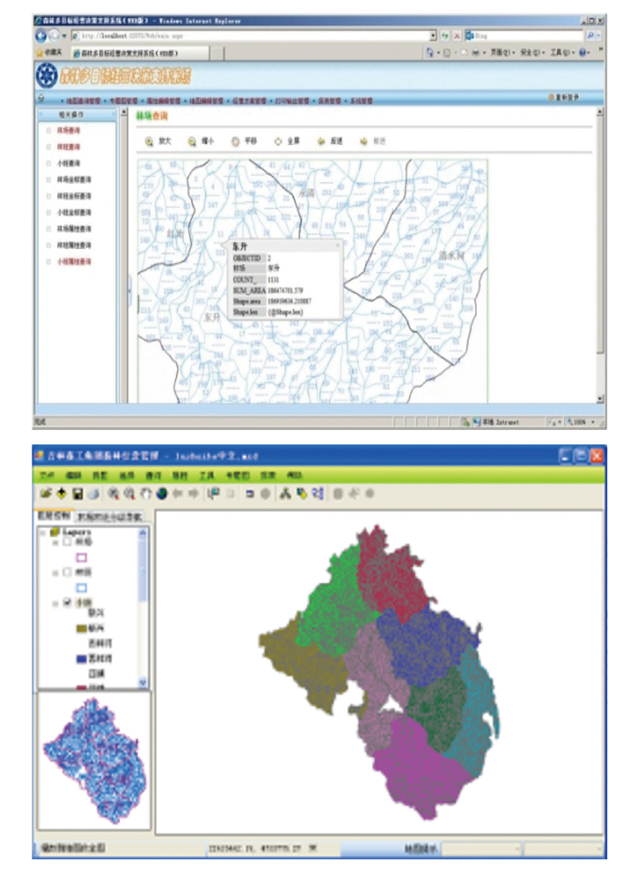 为探求森林资源的可持续经营与管理,长白山站与露水河林业局开展合作研究、试验基于 3S(全球定位系统—GPS、地理信息系统—GIS、遥感—RS)的数字化林业信息技术管理体系。通过该体系的研究和研制,将传统基于林分尺度的森林经营技术转变为基于空间尺度的生态系统管理技术,实现了传统林业到数字林业的转变。通过在不同林业管理部门的试用与完善,研制出了《森林生态系统管理决策支持系统》(图 15),推广示范面积已达 12.1 万公顷。吉林森林工业集团有限责任公司科学技术开发中心评价认为:《森林生态系统管理决策支持系统》实现了森林资源数据的空间数据和属性数据的动态更新,提高了森林经营决策精准化,节省了人力、物力和财力,为东北天然次生林的可持续经营作出了重要贡献,为同行业其他地区森林资源的数字化管理提供了借鉴。
