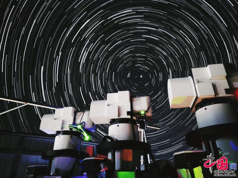 延时摄影下的阿里地面站望远镜,用于与墨子号进行量子通信。中国科学技术大学供图