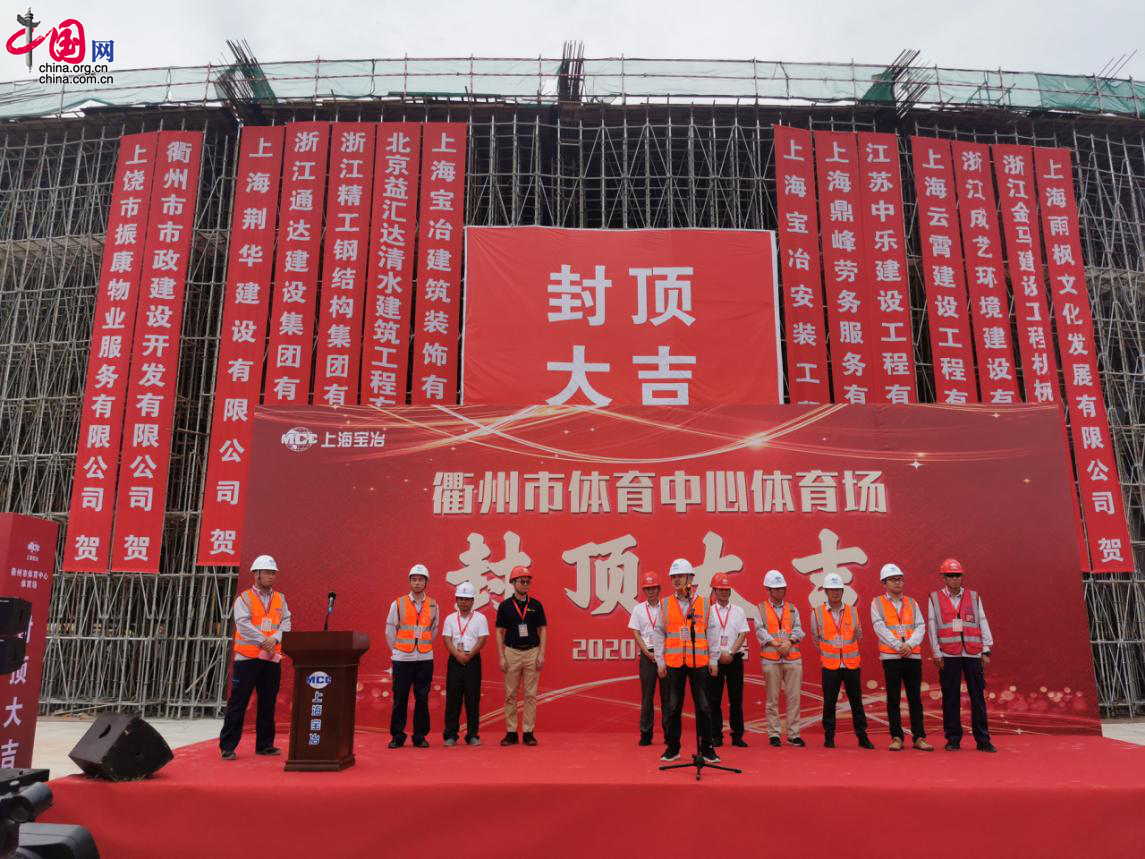 中国网/中国发展门户网讯 7月20日,由上海宝冶集团有限公司承建的衢州市体育中心3万座的体育场主体结构封顶。