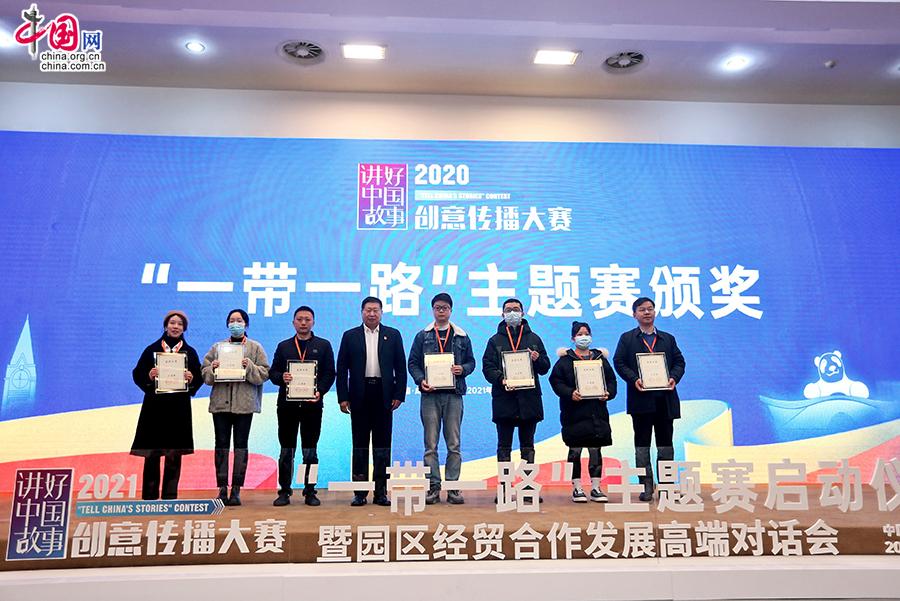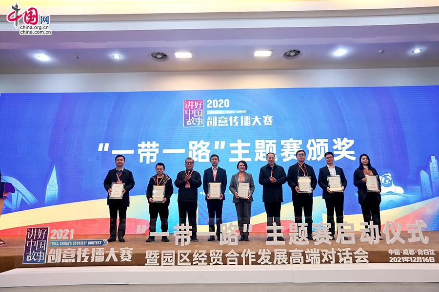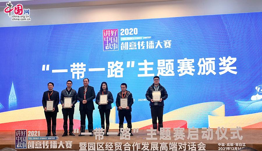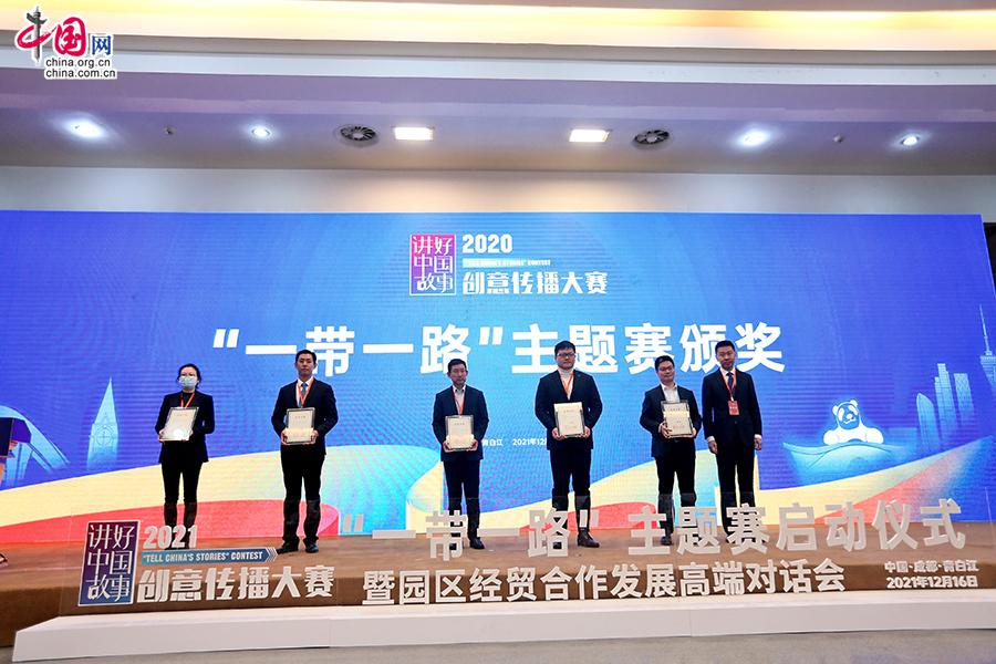 图为2020“讲好中国故事”创意传播大赛“一带一路”主题赛三等奖获奖作品颁奖现场。白桂斌/摄