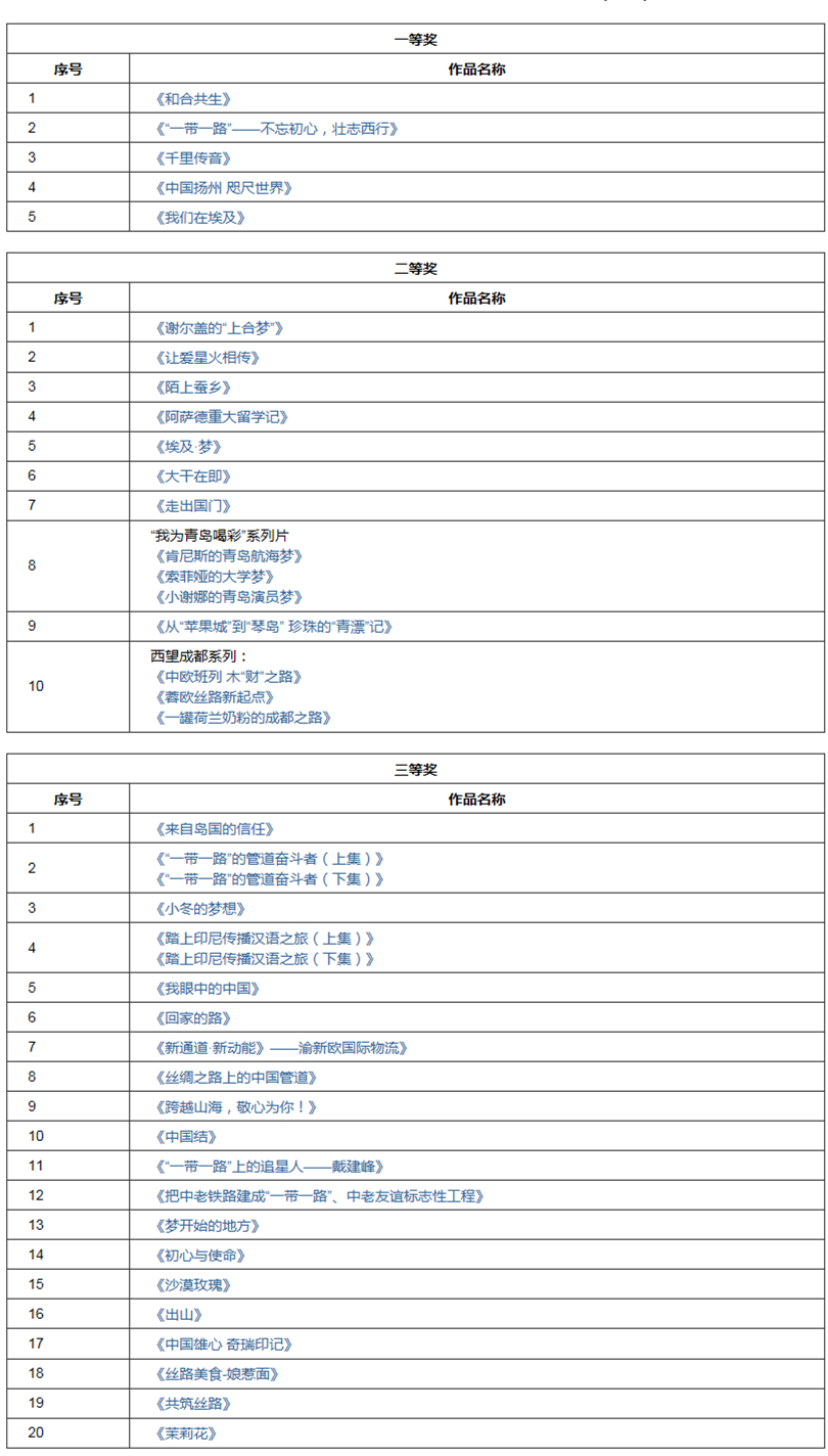 2020“讲好中国故事”创意传播大赛“一带一路”主题赛获奖作品名单