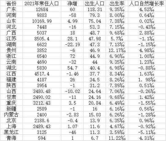 在出生率方面,数据显示,在23个省份中,仅有2个省份人口出生率高于1%(即千分之十),为贵州和青海,广西和甘肃以9.68‰并列第三。云南和广东则以9.35‰并列第五。
