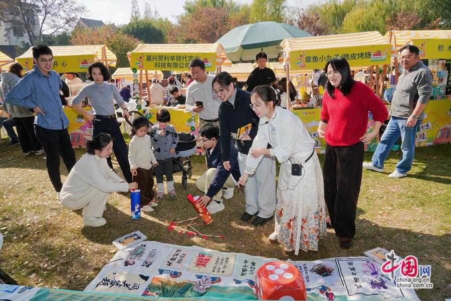 11月30日,集创意文创、非遗展演、互动体验于一体的“浙派民居”专项闭幕式暨青春市集在广陈镇明月山塘景区举行。绍兴文理学院的“杉青江湖令”剧本杀展位吸引亲子家庭参与剧情,在“菌菇基地智斗”环节学习种植知识,间接带动周边菌菇农户销售;宁波城市职业技术学院的“桥你欢心”文创展位,印有浙派民居元素的徽章、明信片、小镜子成为热门伴手礼……每位游客都能直观感受“产业赋能乡村”的民生温度。