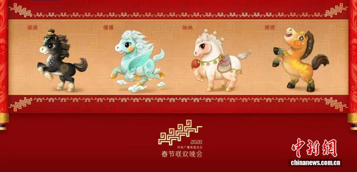 中新社北京12月18日电 (记者 高凯)中央广播电视总台《2026年春节联欢晚会》18日发布吉祥物形象,“骐骐”“骥骥”“驰驰”“骋骋”四匹骏马,活泼可爱、意气风发。