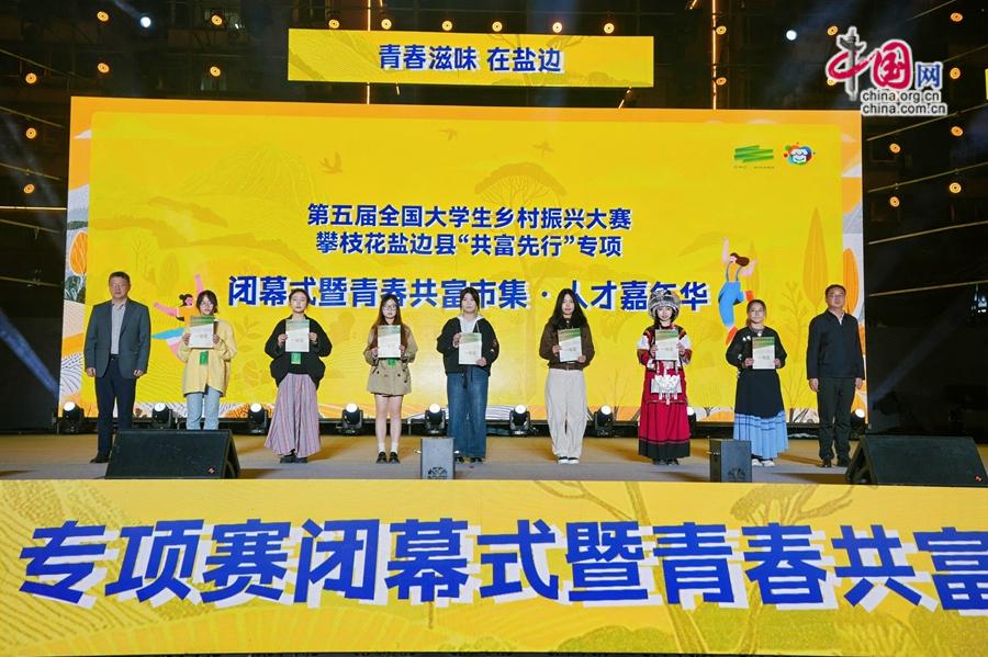 中国网/中国发展门户网讯 2025年12月21日,第五届全国大学生乡村振兴大赛攀枝花盐边县“共富先行”专项闭幕式暨青春共富市集・人才嘉年华在盐边县举行,活动全面总结大赛8个月来的丰硕成果,政企校村代表齐聚一堂,共商青年入乡发展新路径、共绘乡村振兴新蓝图。