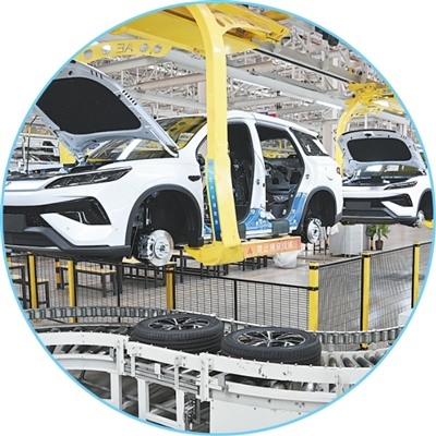 郑州航空港区比亚迪总装工厂的新能源汽车“宋Pro”生产线。
