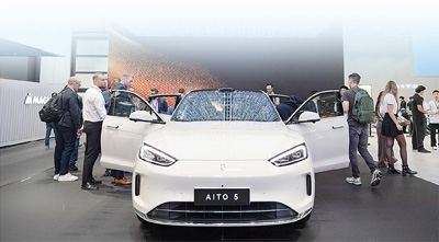 人们在德国慕尼黑国际车展的中国品牌汽车展台参观。