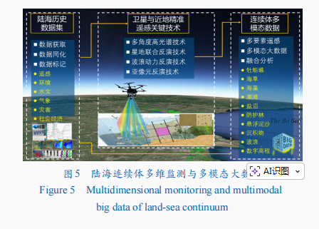 当前我国海岸带生态屏障亟须构建陆海连续体多维感知与立体监测体系,以提升数据精度与时效性,支撑生态功能的动态评估与预警。具体实施路径包括3个方面(图5):构建陆海连续体通用多元数据集。整合获取近地面—无人机—卫星遥感数据、环境与生物数据、水文气象数据、灾害数据与社会经济等多源数据,经质量控制构建历史基础数据集;开发数据同化模块,统一时空基准;通过精细化样本标注与数据增强,形成标准化训练与验证样本库,服务于遥感解译与模型预测。发展卫星与近地精准遥感关键技术。研发多角度偏振高光谱成像、主被动光学遥感及耀光甄别技术,提升对近岸波浪动力等关键过程的捕捉能力;推进多源多尺度(卫星—无人机—地面)联合反演技术,实现地物亚像元级高精度监测。构建陆海连续体多模态大数据系统。开展礁—草—藻—沙—滩—沼—林—波—流等陆海连续体多要素反演,形成多模态、多尺度、多时相的遥感与多维感知大数据;融合历史存档与实时监测数据,开发长时序、多尺度数据融合与预测技术,建立陆海生态屏障关键因子时空无缝数据库。通过立体组网观测、智能反演与数据融合,形成从数据采集到决策支持的完整技术链条,为海岸带生态屏障建设提供全要素、多尺度的技术与数据支撑。