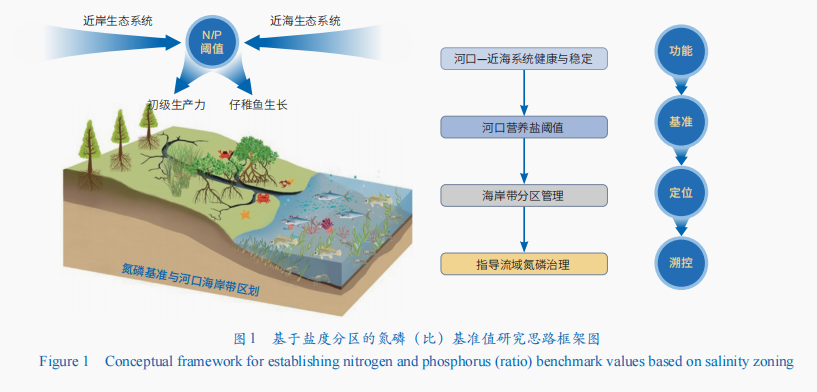 确立分区基准,构建科学分级标准体系。河口海岸带水环境管理的空间差异化策略。河口海岸带具有明显的陆海梯度特征,其水环境管理需体现空间差异。建议将河口氮磷分区基准与现有空间功能区划深度耦合,构建近口段、河口段和口外海滨段差异化的分级标准体系。河口段与口外海滨段差异化管控措施。在河口段与口外滨海段,本文基于盐度梯度推导的分区基准,可作为制定地方性海水水质标准的重要科学依据。在不同海洋功能区域(如渔业区、生态保护区)应实施差异化管控。例如,生态保护区建议严格执行基准要求,而渔业用海区则应侧重于维持适宜的氮磷比,以促进硅藻等优质饵料生物的繁殖,支撑渔业资源可持续发展。加强近口段氮磷监测。在近口段,陆源输入影响更为显著,但由于缺乏足够的实测数据,本研究未能推导该区域的氮磷基准值。今后应加强近口段的野外调查与现场观测,完善氮磷基准研究,支撑“以海定陆”的陆源氮污染管控策略实施。