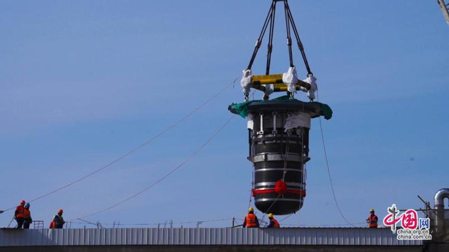 钍基熔盐堆堆本体吊装。中国科学院上海应用物理研究所供图