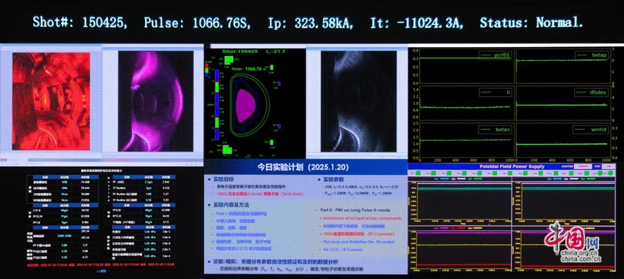 EAST亿度千秒高约束模式等离子体运行世界纪录屏幕截屏。中国科学院合肥物质科学研究院供图