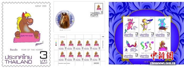 图为泰国发行的马年邮票及此前发行的生肖邮票。(图片来源:泰国《民族报》)