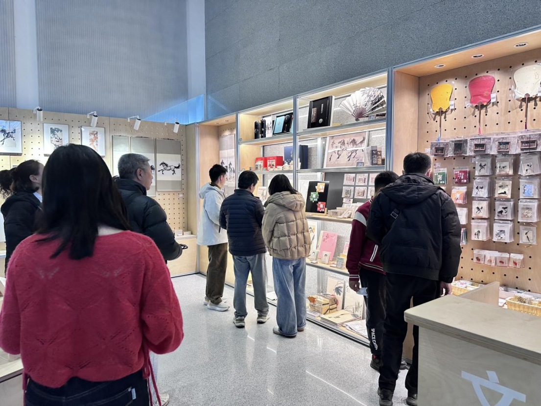 2026年2月19日,观展结束,观众意犹未尽,在一层的文创展区,大家精心挑选着马年独有纪念品。新华网记者 李晏 摄