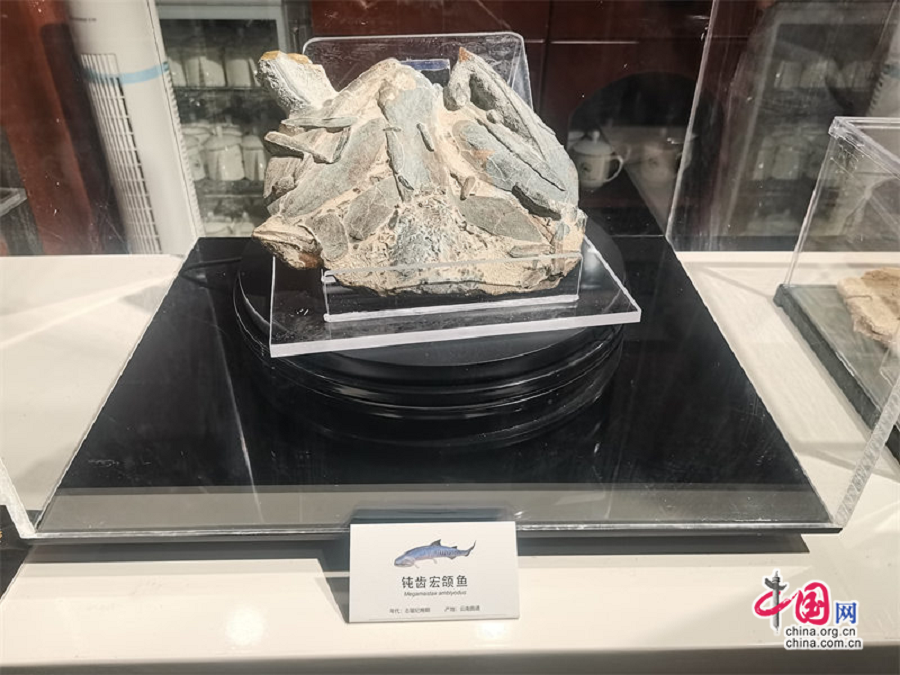 图为钝齿宏颌鱼化石。中国网 王振红摄