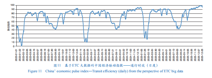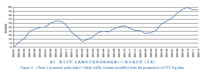 中国网/中国发展门户网讯 高速公路作为连接生产与消费、区域与城乡、国内与国际的重要枢纽,其通行数据天然蕴含着丰富的经济活动信息。高速公路网络正是物流“筋络”中承担跨区域循环的“大动脉”,而已实现全国路网覆盖、全量采集车辆的高速公路电子收费(ETC)系统,其生成的高频、全域、精准数据,堪称观测中国经济运行态势的微观窗口。