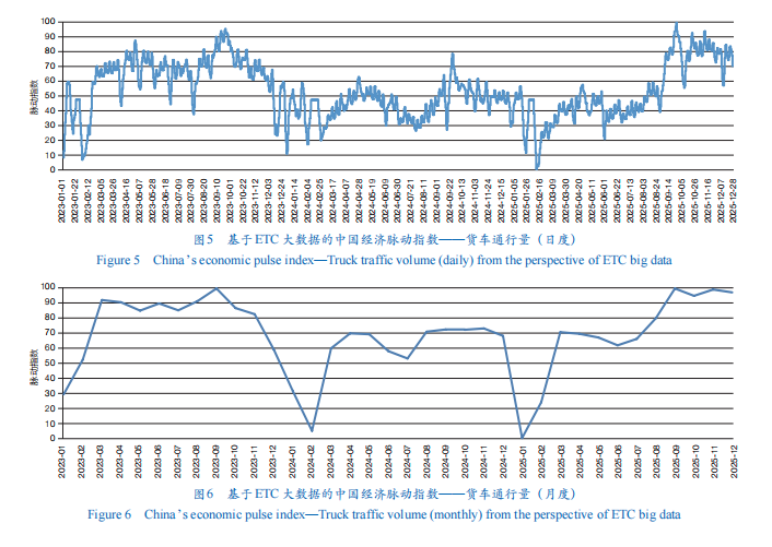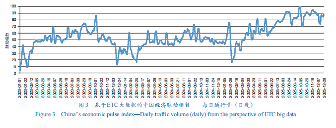 基于此,本文遵循经济活动基础、生产流通支撑、空间协同交互、运行效率保障的经济运行逻辑,尝试构建了中国经济脉动指数,旨在系统挖掘ETC大数据背后的经济内涵,动态解读2023—2025年中国经济的运行特征与结构变化,识别当前面临的关键压力与机遇,进而提出以数据赋能经济治理、畅通经济循环的政策建议,以期为“十五五”时期经济高质量发展提供决策参考。