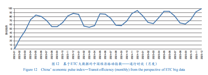 将ETC大数据深度嵌入宏观经济治理体系。支持高校与企业共建“中国物流经济数字实验室”,定期发布《中国经济脉动指数月报》,动态跟踪通行量、货车活跃度、跨区域流动强度、载荷效率及通行时效等五大核心指标变化。将指数的异常波动纳入宏观政策预调微调的核心参考依据,构建“数据实时感知—潜在问题精准识别—调控政策靶向响应—实施效果科学回测”的全链条闭环管理流程,真正让高时效性、高颗粒度的ETC微观大数据,成为实时捕捉经济运行脉搏、预判发展趋势的重要抓手,进而为提升宏观治理的前瞻性、精准性与有效性筑牢核心感知节点。