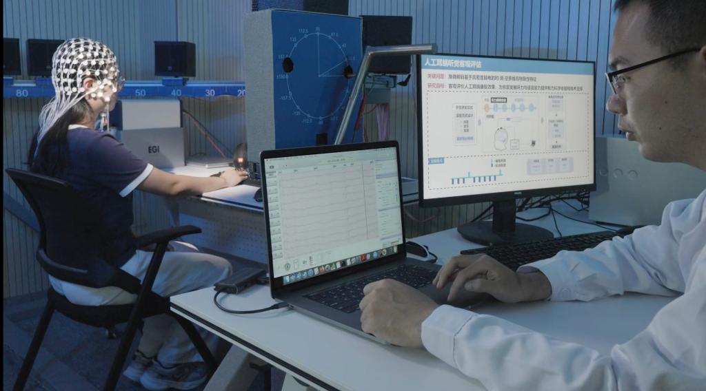 “这是为了判断听障儿童是否‘听得清、听得懂’,评估人工耳蜗的植入效果。”该实验室常务副主任倪广健说,该系统已在多地医院开展临床科学研究,为上百例儿童听障患者的语言康复之路打开新可能。