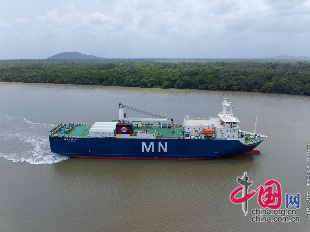 “微笑卫星”任务自2025年10月28日通过中欧联合出厂评审后,全面进入发射实施阶段。2025年11月底,卫星所需推进剂从上海启运,于2026年2月初运抵库鲁码头并转运至发射场。2026年2月11日,正样星及地检设备从位于荷兰的欧洲航天技术中心出发,从阿姆斯特丹码头搭乘“蜂鸟号”货轮横穿大西洋,于2026年2月26日抵达库鲁码头并顺利转运至发射场。